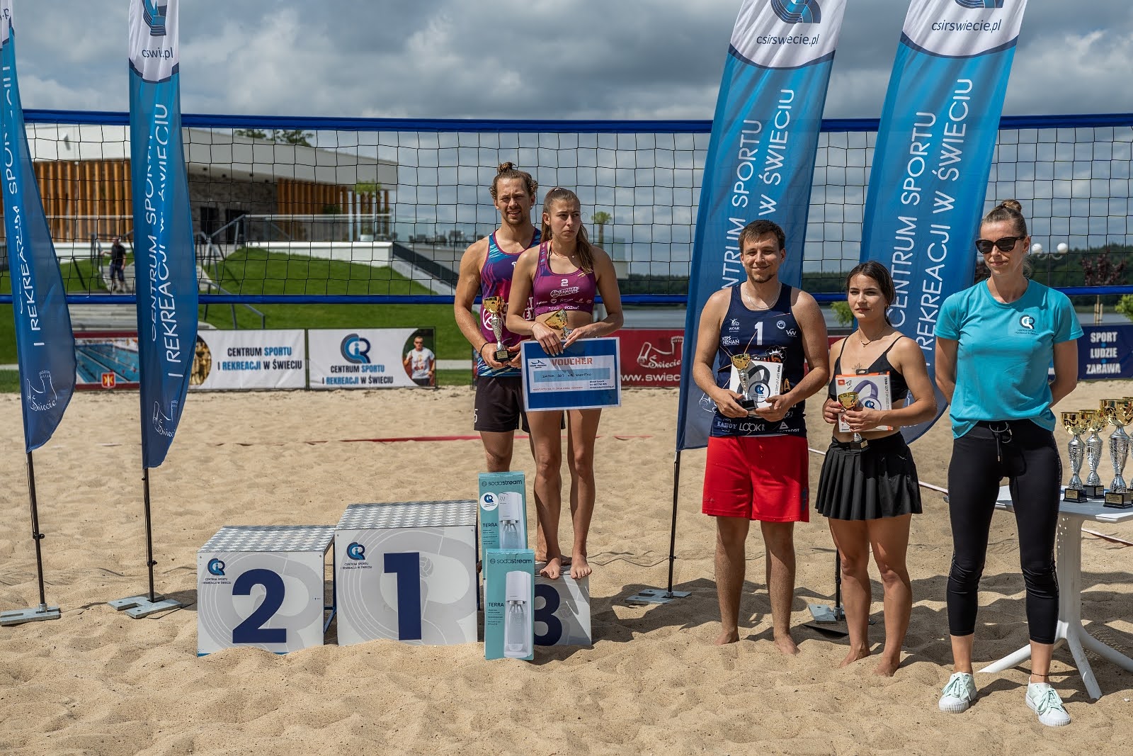 Turniej toczył się w formule mikstów, systemem brazylijskim– bo jak wiadomo, nic tak nie łączy jak wspólny piach i walka o każdą piłkę. Finał? Prawdziwy rollercoaster – z przewrotami, zwrotami akcji i zakończeniem, które można by spokojnie opisać hasłem: “Nie było łatwo, ale było warto!”